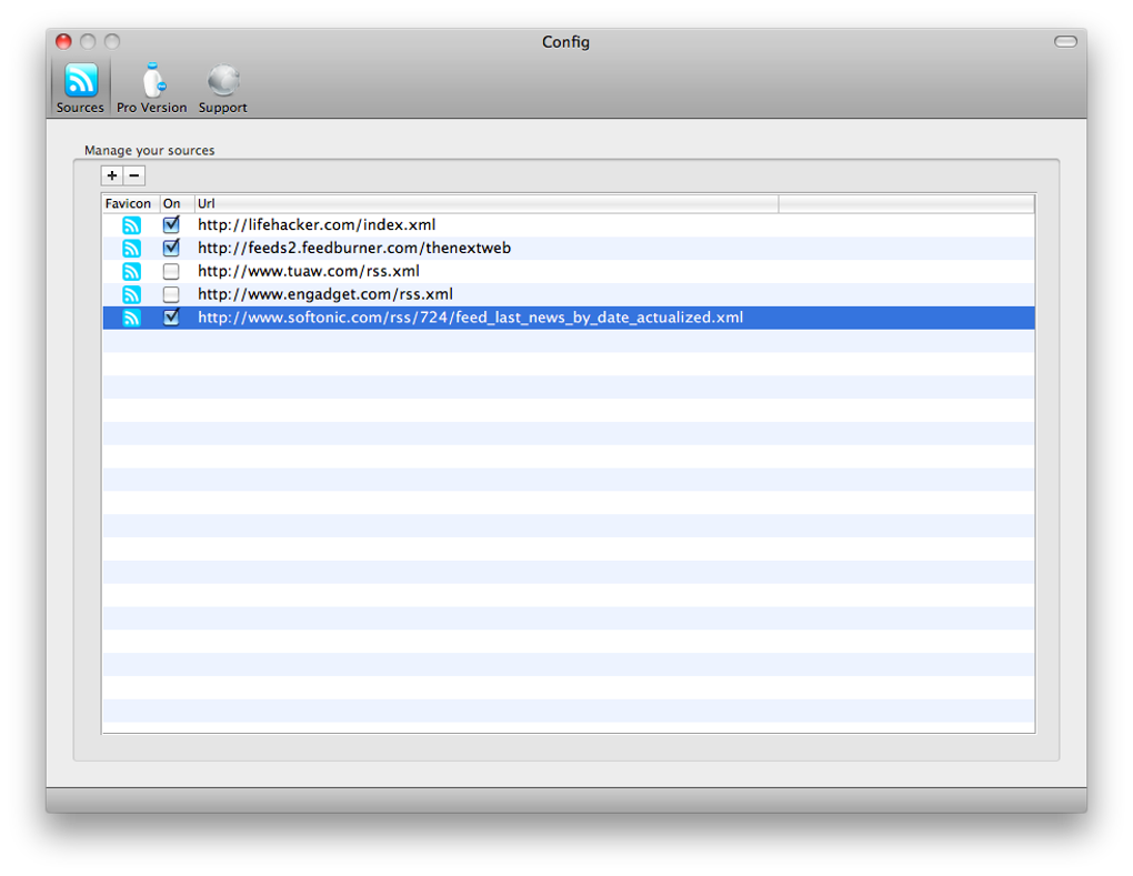 Fresh Feed es muy sencillo. Configuras los enlaces RSS a seguir y la aplicación te los mostrará cuando hagas clic en el icono de la barra de menú, que se irá actualizando con cada nueva noticia.